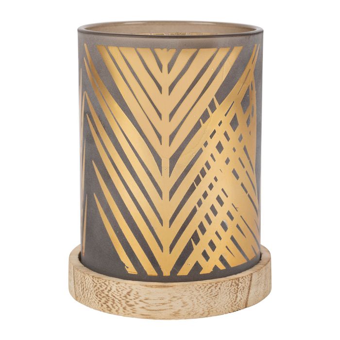 PHOTOPHORE PHOENIX GRIS+DORE D10XH13CM VERRE